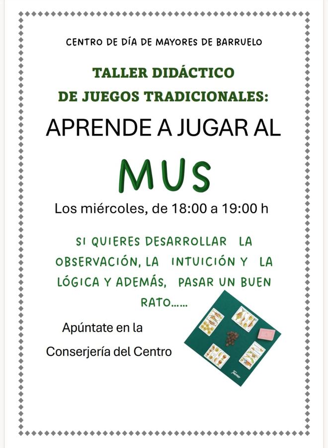 + Dinamización de Actividades de Envejecimiento Activo y Saludable Centro de DÃa de Personas Mayores de Barruelo